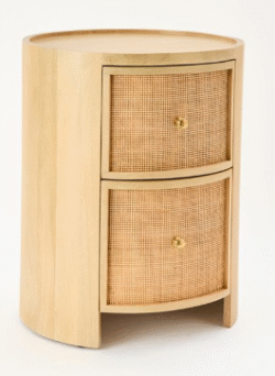 This elegant bedside table is crafted from high-quality Mango wood & Travertine Marble with Chestnut finish.