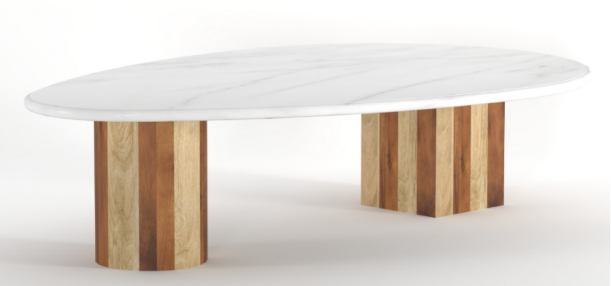 This Stripe wooden coffee table is crafted from Mango wood & White Banswara marble with a Natural /Walnut finish.