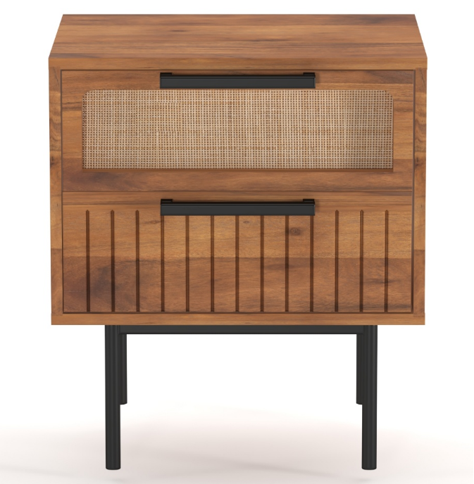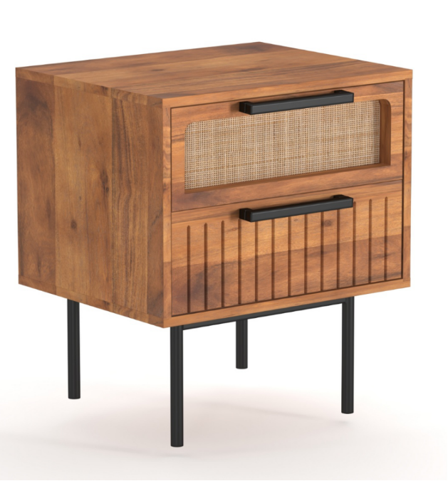 This elegant wooden bedside table is crafted from high-quality solid wood & Cane with a Light Walnut finish.